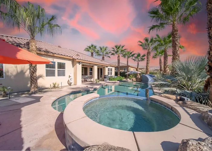 Located nearly a 10-minute ride from The Golf Club at Terra Lago, Casa De Nina Luxury Home Pool Spa Bbq Gameroom Indio offers a patio with views of the mountain. Offering a private swimming pool, the Indio holiday home invites guests to visit the Shields Date Garden, located approximately 6 km away.
